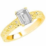 18K Yellow Gold Emerald Cut White Quartz and Round Diamond Ring (1 cttw, H-I, SI) 18K Yellow Gold EThis dazzling sparkling timeless ring is classic and can be used as an engagement ring, anniversary ring, bridal ring, promise ring, proposal ring, fashion ring, wedding ring, cocktail ring and also to represent eternal love between you and that special someone. This 18K Yellow Gold diamond ring is prong set with 2 round diamonds and 1 Emerald Cut White Quartz gemstone. The center gemstone measures approximately 7 x 5 mm. The total carat weight of the entire ring is approximately 1.00 carat. The diamonds are H-I color and SI-I2 clarity. The ring band measures approximately 2.50 mm wide and 1.90 mm thick.....