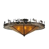 Meyda Tiffany Custom Lighting 110338 Wildlife 6-Light Flush Mount, Mahogany Bronze Finish with Amber Mica PanelsMeyda Tiffany 110338 Wildlife 6-Light Flush Mount is hand crafted in the USA by Meyda artisans. Bring a little of the rustic outdoors into your personal sanctuary with the rich Mahogany Bronze finish complemented with the warmth of the glow from the Amber Mica panels and depictions of Elk, Deer, Moose, and Buffalo for a piece every lodge or cabin, or even an urban home deep in the city will appreciate for years to come. As an alternative, hang over a dining room table or in a greatroom the rustic charm. The 110338 is 20-Inch high x 48-Inch wide. The 110338 comes one per package, and requires six 100-Watt medium base incandescent bulbs (not included), dimmable using a standard incandescent dimmer. As in any hand crafted glass, patterning and the overall look may vary, and may not look exactly like the image shown when received, and may all differ slightly if ordering in multiples. Custom crafted in Yorkville, NY - please allow 30 days before shipping. The Meyda Tiffany Company is the nation's leading manufacturer and designer of Tiffany lamps and decorative lighting. Although founded in 1974, the firm's roots actually date back to the early 1900s, supplying Louis Comfort Tiffany and Tiffany Studios with lighting products, and creating the original Coca-Cola stained glass lamps and chandeliers. Meyda Lighting offers thousands of in-stock stained glass lighting and decor designs, with more than 50,000 customizable lighting options. Its vast line includes: Coca-Cola stained glass lighting group; Old Forge Collection of Rustic and Lodge styled lighting and decor; Craftsman Signature Series of outdoor and indoor lighting (including new landscape lanterns) featuring Arts and Crafts designs; Stained Glass lighting featuring Victorian, Nouveau and a broad range of styles; Art Glass windows and Fireplace Screens; Tiffany gifts and home accents; and The Metro and Metro Fusion Lines of contemporary art glass and fused glass designs.