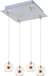 ET2 Lighting E94772-25 Starburst - Four Light RapidJack Pendant, Satin Nickel Finish with Clear/Amber Glass