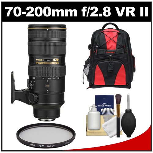 Nikon 70-200mm f/2.8G VR II AF-S ED-IF Zoom-Nikkor Lens with Backpack + UV Filter + Cleaning Kit for Nikon D3100, D3200, D5100, D7000, D600, D800, D4 Digital SLR Cameras