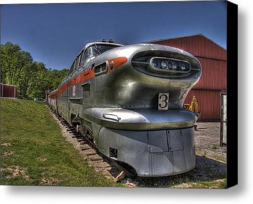 #This is a beautiful stretched-canvas print wrapped on 1.5" thick stretcher bars. The print is professionally printed, assembled, and shipped within 2 - 3 business days from our production facility in North Carolina and arrives ready-to-hang on your wall. Fine Art America is home to more than 75,000 artists from all over the world who entrust us to fulfill their print orders online. We offer a 30-day money-back guarantee on every print that we sell and look forward to helping you select your next piece. Keywords: Aerotrain Canvas Print, Train Canvas Print, Streamliner Canvas Print, Streamlined Canvas Print, Streamline Canvas Print