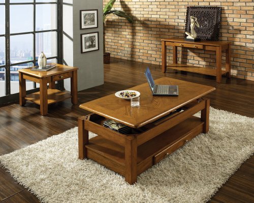 Steve Silver Nelson 3 Piece Occasional Table Set in Dark Oak?Bring style and function into your home with the Nelson collection. This collection features a lift-top cocktail table with casters, drawers for storage on each table, and a bottom shelf for magazines all wrapped in Oak finish. What's included: Cocktail Table (1), End Table (1), Sofa Table (1).