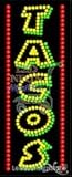 | ✚✚✚ Tacos LED Sign 11 inch tall x 27 inch wide x 3.5 inch deep outdoor only with outdoor box for use under regular weather made in USA This Tacos Sign is perfect for your business. It will bright your business very good,will get customer's attention and very good guideline to your customer. This LED Tacos sign prefect for day and night time. Our LED signs are hand made in USA facility. High impact, eye catching, real LED sign, very low energy usage