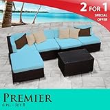 Premier Outdoor Wicker 6 Piece Patio Set Tropical Blue Covers -06B