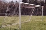 | ✚✚✚ 6.5'H x 12'W x 2'D x 6'B Official Round PostsGoal These goals are built with durability and safety in mind.They are NOT painted There is no hardware on the face of the goal. Heavy-duty backstays provide added durability, and eliminate a weakness inherent in the all-aluminum design. Portable models are six-piece contruction for easy assembly and disassembly. These goals are strong and lightweight and excellent on grass and artificial turf. These official goals exceed NCAA, NHSAA and FIFA specifications. Ships by Truck. Sold as a single goal.