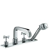 Hansgrohe 39452001 Chrome Axor Citterio Axor Citterio Roman Tub Filler Faucet with Diverter, Metal Cross Handles, Oversized Spout and Multi Function Hand Shower Less Valve and Base Plate 39452